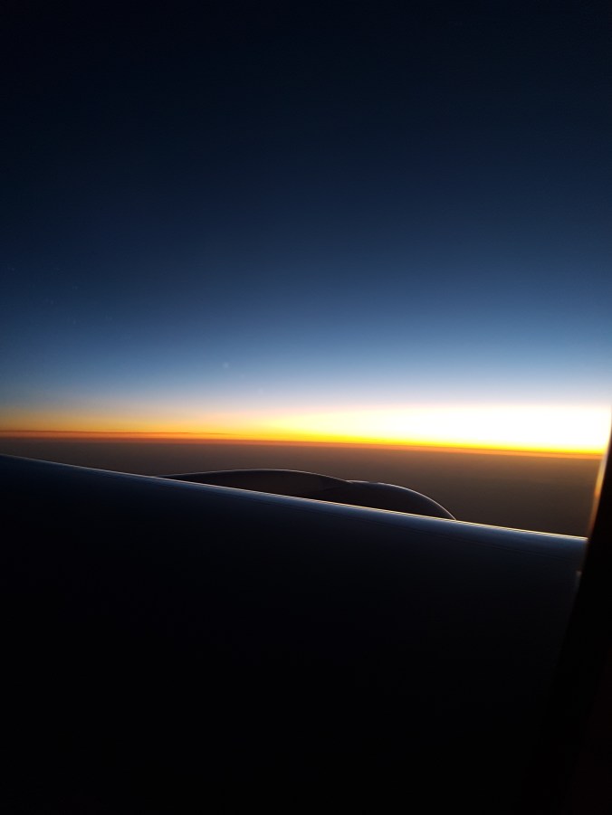 Um 17.20 war dann auch schon Boarding angesagt und der erste Flug von Ljubljana nach Frankfurt begann. Soweit alles ohne Zwischenfälle (war ja auch nur 1 Stunde und 25 Minuten Flugzeit). Dort angekommen erlebte ich einen wunderschönen Sonnenuntergang. Um 21.00 war es dann auch schon Zeit den zweiten Flug zu “boarden”. Um 22.00 hob das Flugzeug auch schon ab und es begannen 12 Stunden, 25 Minuten Flugzeit nach Singapur. Kaum zu glauben ein “ganzer halber Tag”. Bis auf ein bisschen mulmiges Grummeln gegen Ende des Fluges vergingen die Stunden erstaunlich schnell. Um 16.46 lokale Zeit in Singapur gelandet war ich trotzdem froh, mal fünf Stunden auf festem Boden zu sein und auf das laute Dröhnen der Turbinen und das Ruckeln des Luftwiderstandes verzichten zu können. Dringend benötigten Schlaf konnte ich am Flughafen gut nachholen. Dann machte ich mich auch schon auf den Weg zum Terminal 3 via “Skytrain”, also mit dem Zug. Dort entspannte ich noch in der “Snoozle Lounge” bevor es um 20.30 schon wieder zum Boarding ging. Wie ich Singapur am Flughafen kennenlernte, wunder es mich so gar nicht, dass vor dem Betreten des Gates nochmal eine Sicherheitsüberprüfung des Handgepäcks bevorstand. Diese Maschine war noch größer als die letzte und bis jeder Passagierin ihren und jeder Passagier seinen Platz fand, dauerte es über eine Stunde. Um 21.45 hoben wir auch schon wieder ab für einen Flug mit 7 Stunden und 40 Minuten Flugzeit. Diesmal war ein Asterix Film, eine Monk Episode und schlafen angesagt.