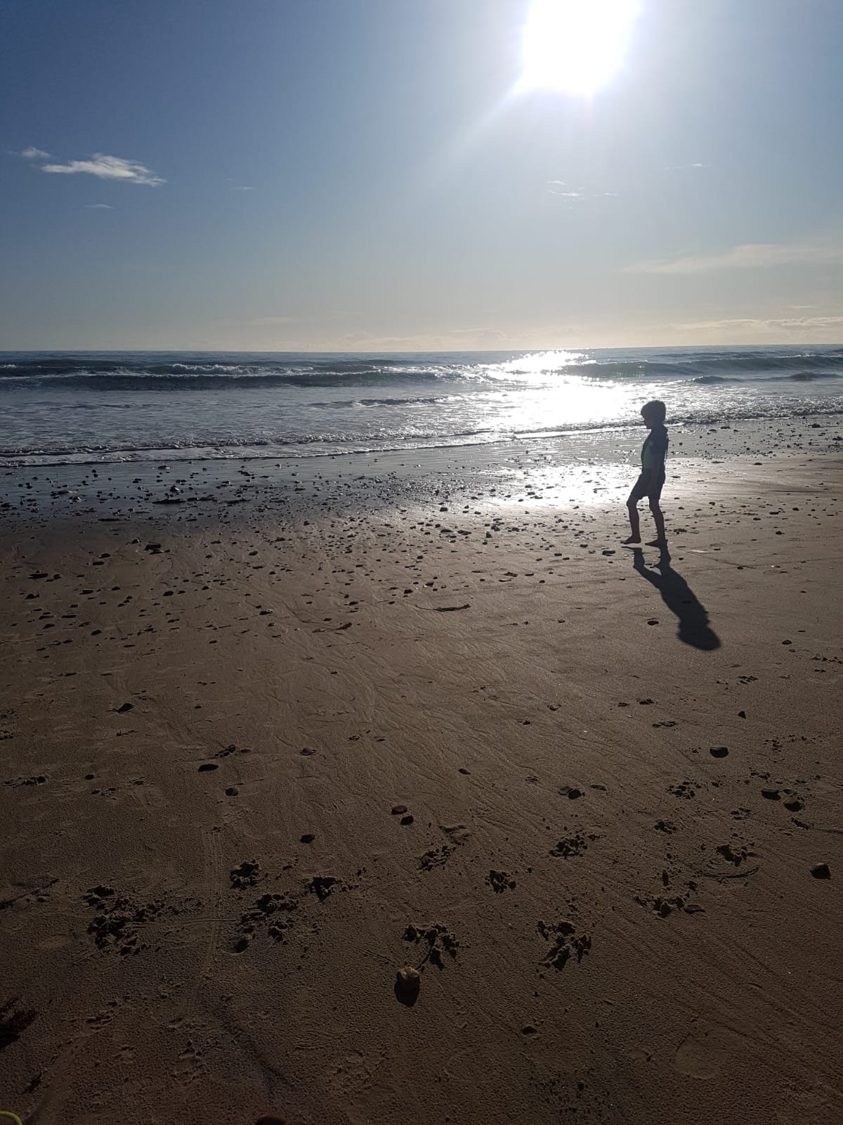 Samstagmorgen wollten wir den Bauernmarkt besuchen doch der Regen überholte uns und so gingen wir in eine Bäckerei und unser Auto fuhr danach zurück zum Strandhaus um uns auszuruhen. Oh, wie schön sind doch Mittagsschläfchen. Ich kann mich oft tiefen entspannen wenn ich einen Mittagschlaf habe. Während ich schlief zog das Unwetter vorbei und als ich aufwachte war es wie ein neuer Tag! Sonnenschein, kein Wind, einfach wundervoll. Tara, Chris und Annabelle gingen zu einer Weinverkostung und in der Zwischenzeit erlebte ich mein absolutes Highlight des Urlaubs: Saxon, Harlee, Scarlett zogen ihren Neoprenanzug an und gemeinsam gingen wir zum Strand und genossen es einfach zu SEIN. Wir rannten durch die Wellen, bauten Sandburgen, sammelten Sonnenstrahlen, Freude und Steine und vergruben unsere Zehen im Sand. Ausgeglichen, geerdet und wieder wir selbst gingen wir wieder zurück zum Strandhaus direkt in die Badewanne und unter die Dusche. Es waar unser letzter Abend und so gingen wie gemeinsam essen und genossen bekocht zu werden. Danach packten wir auch noch schnell unsere Rucksäcke und Taschen mit folgendem Plan: Wachen die Kinder früh auf packten wir das Auto und fahren nach Hause. Schlafen die Kids aus bleiben wir bis Mittag und übernachten auf halber Strecke.