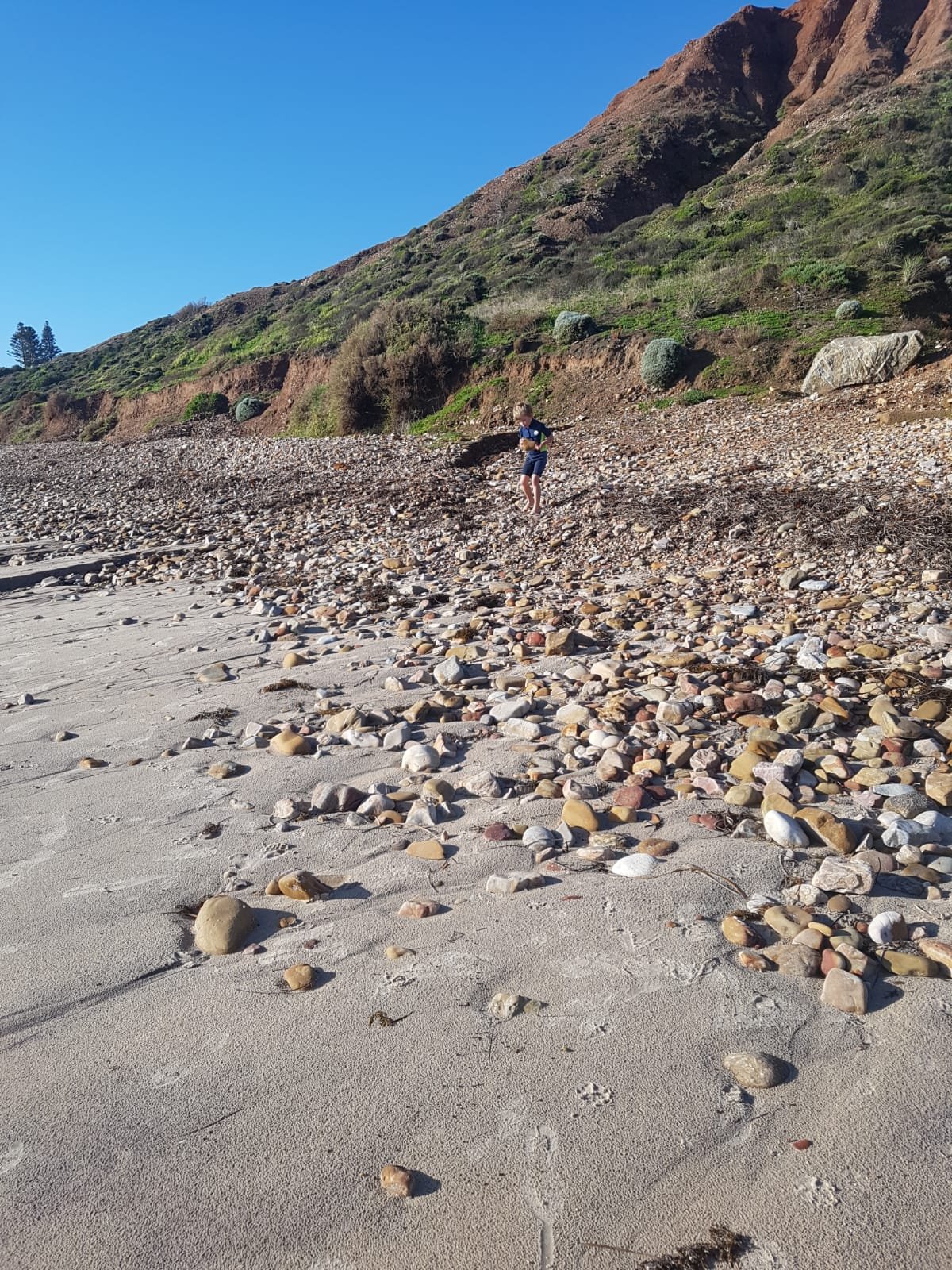 Freitagmorgen “schlief ich aus” und am späten Vormittag fuhr unser Auto auf eine Entdeckungstour. Zuerst erkundeten wir Victor Harbour, aßen dort zu Mittag und besuchten das örtliche Walzentrum. Leider sichteten wir weder einen Wal noch Pinguine. dann ging es weiter nach Rapid Bay. Faule Kurven schlängeln von den Hügeln hinuter bis zum Strand und dem etwas eigenartigen Örtchen. Wow! Was für eine Aussicht. Nach einem Strandspaziergang mit Scarlett und Saxon fuhren wir noch entlang der kleinen Straßen des Ortes und da wurde es etwas eigenartig: Ich zählte um die 25 Häuser, wovon mindestens die Hälfte unbewohnt ist. Doch jeder Garten ist gestriegelt und gemäht, mit teilweise neuen Regenwassertanks. Es gibt auch eine winzige Volksschule und ein sehr gepflegtes Cricket-Feld. Doch das Internet verriet uns 16 Personen die dort wohnen würden. Irgendwie fühlte es sich einfach ein wenig wie aus dem letzten Jahrhundert an. Diesen Abend hatten Maya, Leyla, alle Kinder und ich einen Kinoabend mit “Die Eiskönigin 2” während die Eltern ausgingen.