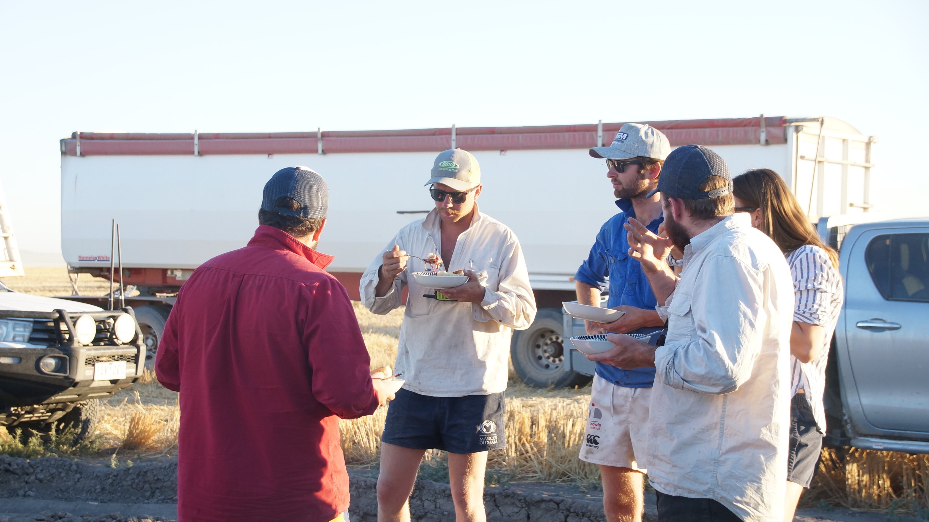 Nach einigen Tagen der “Herumwarterei” ging es dann endlich los und ich fuhr am Donnerstag, dem 29. Oktober 2020 zum ersten Mal auf Feld mit dem Abendessen im Kofferraum. Ich entschied mich meine persönliche Legende “Lasagne” zu kochen – ein sicherer Erfolg wenn auch aufgeregt und nervös beim Vorbeiten. Um 18.00 war ich bereit das Haus zu verlassen – habe aber nicht damit gerechnet 30 Minuten zu deren aktuellen Standpunkt, Brigalow zu gelangen. Überraschenderweise verfuhr ich mich auch nicht auf dem Weg dorthin. Ein Netzwerk von Feldwegen, die ich vorher nicht besichtigte. Und die Karte auf die mir Gerry erklärte wie ich sie finden würde? Sieh doch selbst – nicht so einfach und doch geschafft. Diesen Abend aßen Dylan, Josh, Chris, Gerry, Charlie und zwei weitere Arbeiter die nur für den Tag auf der Farm waren fast alles, das ich mitbrachte. Lasagne, griechischen Salad, Bananenbrot und frisch gebackene Kekse als Nachspeise. Oh, wie sehr sie das Mahl genossen und priesen! Unglaublich wie sehr es vom ersten Abend an wertgeschätzt wurde.