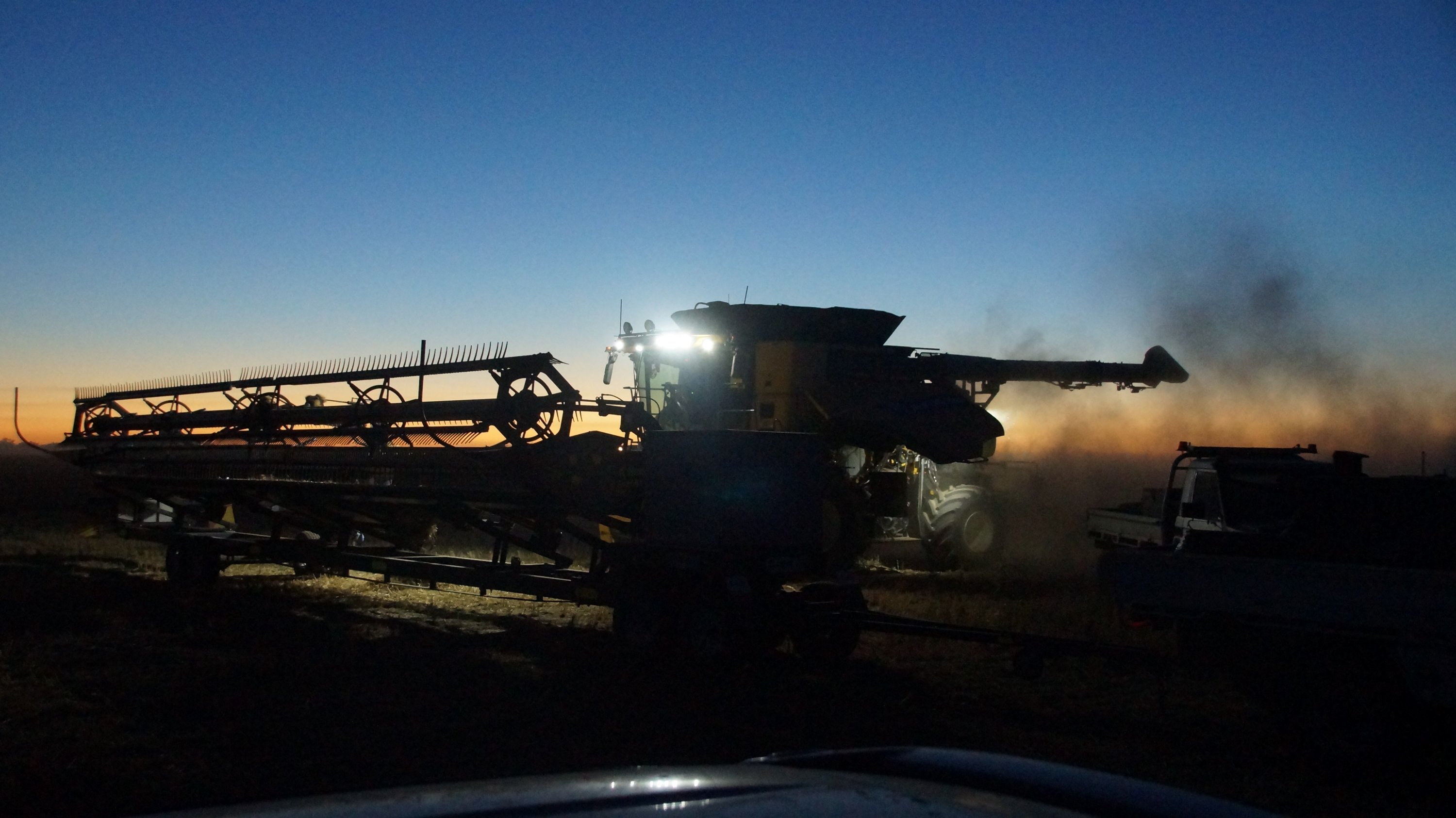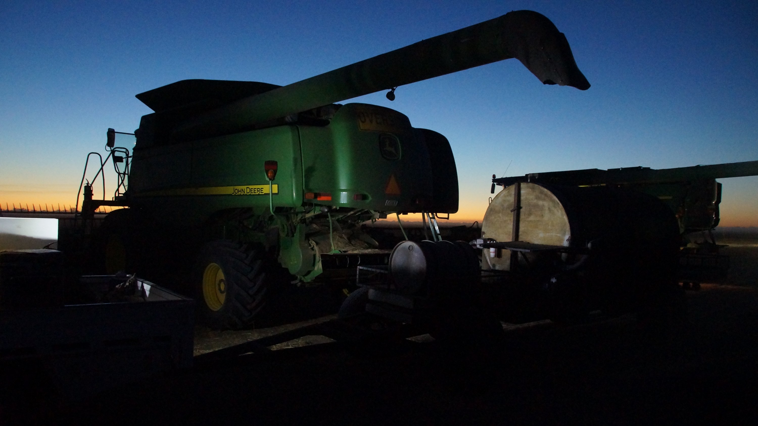 Nachdem wir alle fertig gegessen hatten fuhr ich zurück zum Haus um die Reste zu verstauen, den Geschirrspüler zu füllen und die Küche sauber zu machen. In den ersten Tagen fuhr ich auch sofort nach dem Essen zurück. Es dauerte jedoch nicht lange bevor ich pro Abend jeweils einen anderen Traktor oder Mähdrescher ausprobierte, die jeweiligen Fahrer näher kennenlernte und einfach für ein paar Stunden mitfuhr. Überraschenderweise war das von nun an meine Lieblingszeit des Tages. Doch nicht nur um alle näher kennen zu lernen, ich wollte lernen, wissen und verstehen wie die Mähdrescher funktionieren, wie sie gesteuert werden und wie verschiedenste Probleme gelöst werden. Nachdem mich Andrew seinen John Deere und Toby seinen New Holland Mähdrescher betätigen ließen – also ich im Fahrersitz mit dem Steuerknüpel und all den Knöpfen am ernten und dann befüllen der Chaserbins, während wir weiter ernteten – war diese neue Leidenschaft definitiv entfacht. Es ist simpel und doch so kompliziert, eine tolle Herausforderung. Ich bin mir auch sicher, dass ich näherer Zukunft mal eine Erntesaison als Mähdrescher-Fahrerin verbringen werde. Ich servierte also das Abendessen zwischen 18.00 und 19.00 Uhr, dann ging es für ein paar Stunden auf die Maschinen (mindestens bis 22.30) und manchmal auch bis nach Mitternacht. Zu dieser Tages- (oder würdest du sagen Nacht-) Zeit hatten wir dann auch of gute Geschichten zum Lachen und das ein oder andere Mal ein (oder mehr?) Bier beim “Motherbin” (=der Anhänger, in den die Chaserbins entladen und woraus die LKW wiederum beladen werden). Je mehr Tage vergingen, desto näher zum Haupthaus rückte die Gruppe. Nur um dann zum Schluss wieder die 28 km entfernt zu ernten. Es war gut nicht soooo viel Zeit beim Ausliefern des Gekochten zu verbringen. Für die 28 km wiederum brauchte ich mindestens 30 Minuten, auf Farmwegen. Nachdem ich also auf den Mähdreschern und Traktoren mitfuhr wartete das Geschirr immer noch auf mich. Jedoch war auch dies früher oder später (oder sollte ich sagen später oder früher, weil es ja oft schon die frühen Morgenstunden waren) erledigt.