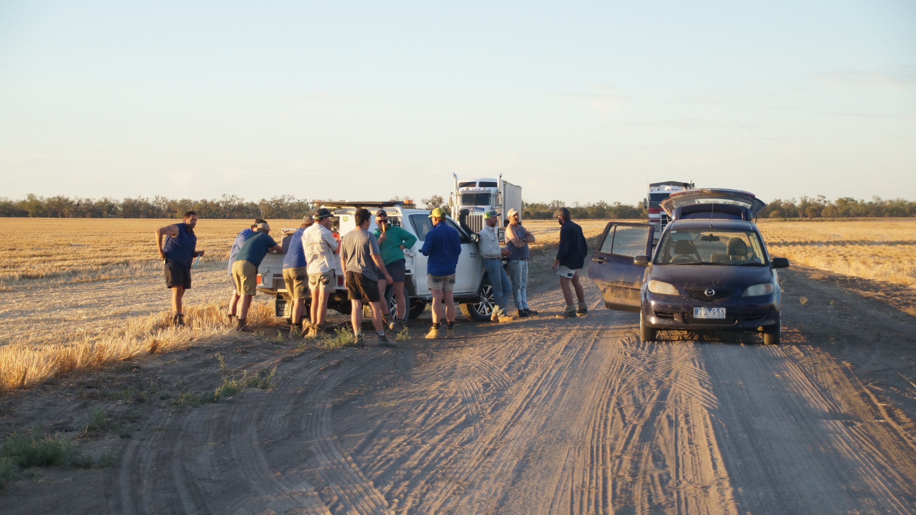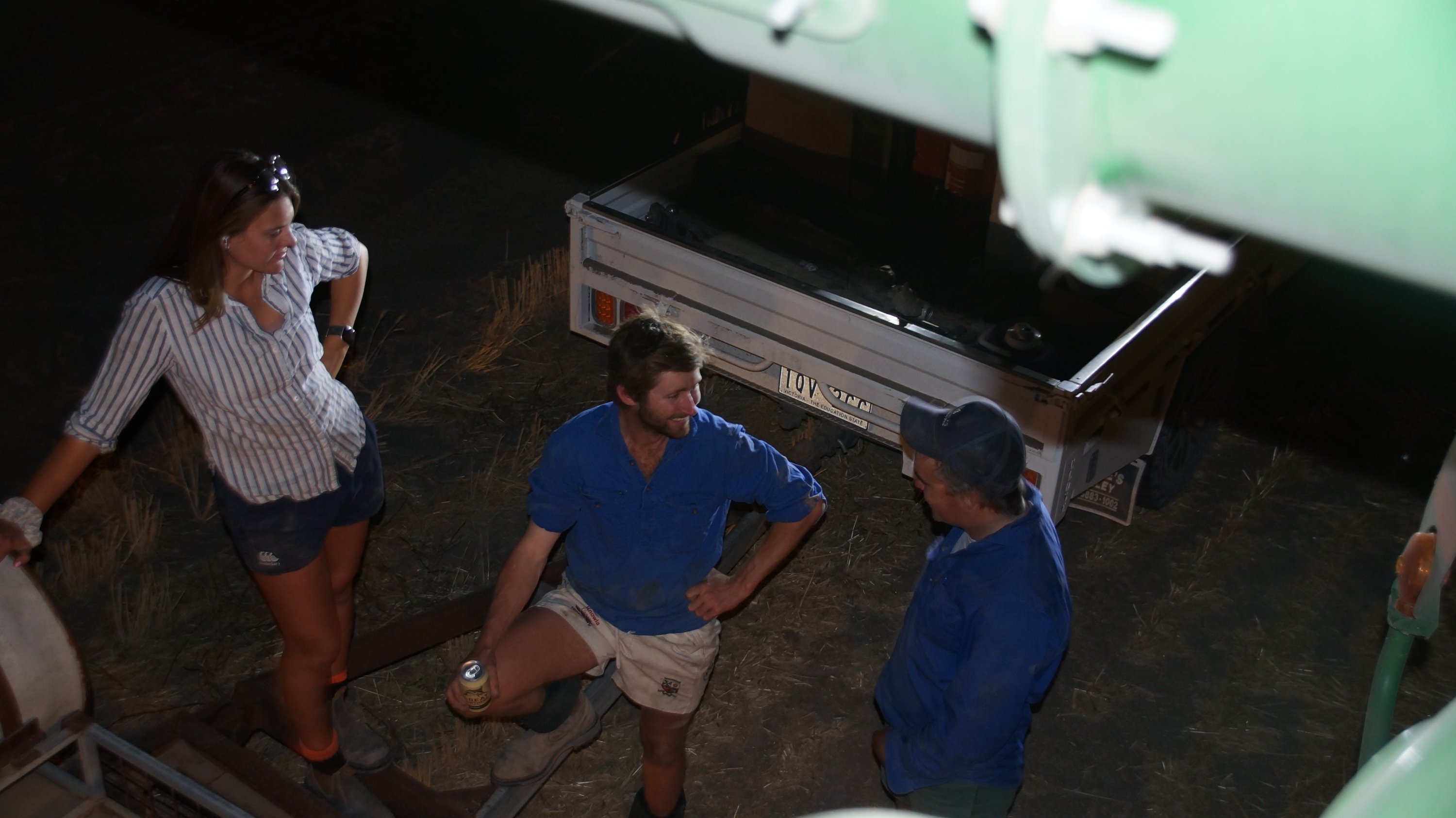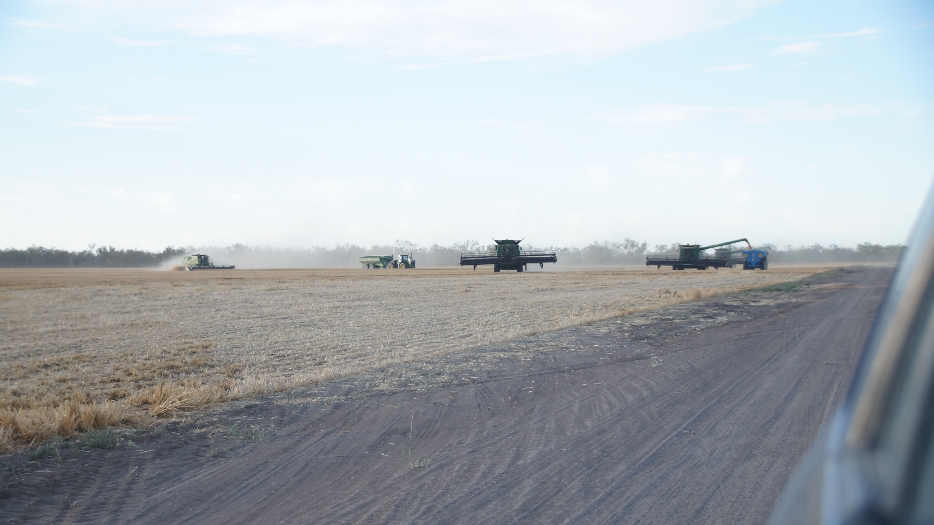 Harvesting 22 days we barely had two days off. There was no such thing as a weekend or friday night. One Sunday night they finished early and we had a BBQ at the mainhouse – finishing early meant having dinner at 9 PM though. It was good to get off the paddock for a bit and have a decent sleep. I quickly found out that a long night, that broke the rhythm would make you more tired than the usual 3 to 5 hours of sleep we all had. A few days after a storm rolled in on thursday at 2 PM and stopped every one pretty fast. 2 mm of rain are enough for the black soil to get awfully soft and sticky. That night we had a barbie again. Enjoying a long afternoon being on the booze and letting loose for once. Another dry storm rolled in that night and suddenly Alicia spotted an orange glow on the horizion – fire. It’s crazy how helpless you feel but still think you could do something about it. Everyone rushed to the utes to get a closer look. Not long after and I swear I have never been more grateful for huge drops coming down the sky, than that night. The fires got put out – thankfully. Putting it this way: The workers had 2 days off but still had to be fed …