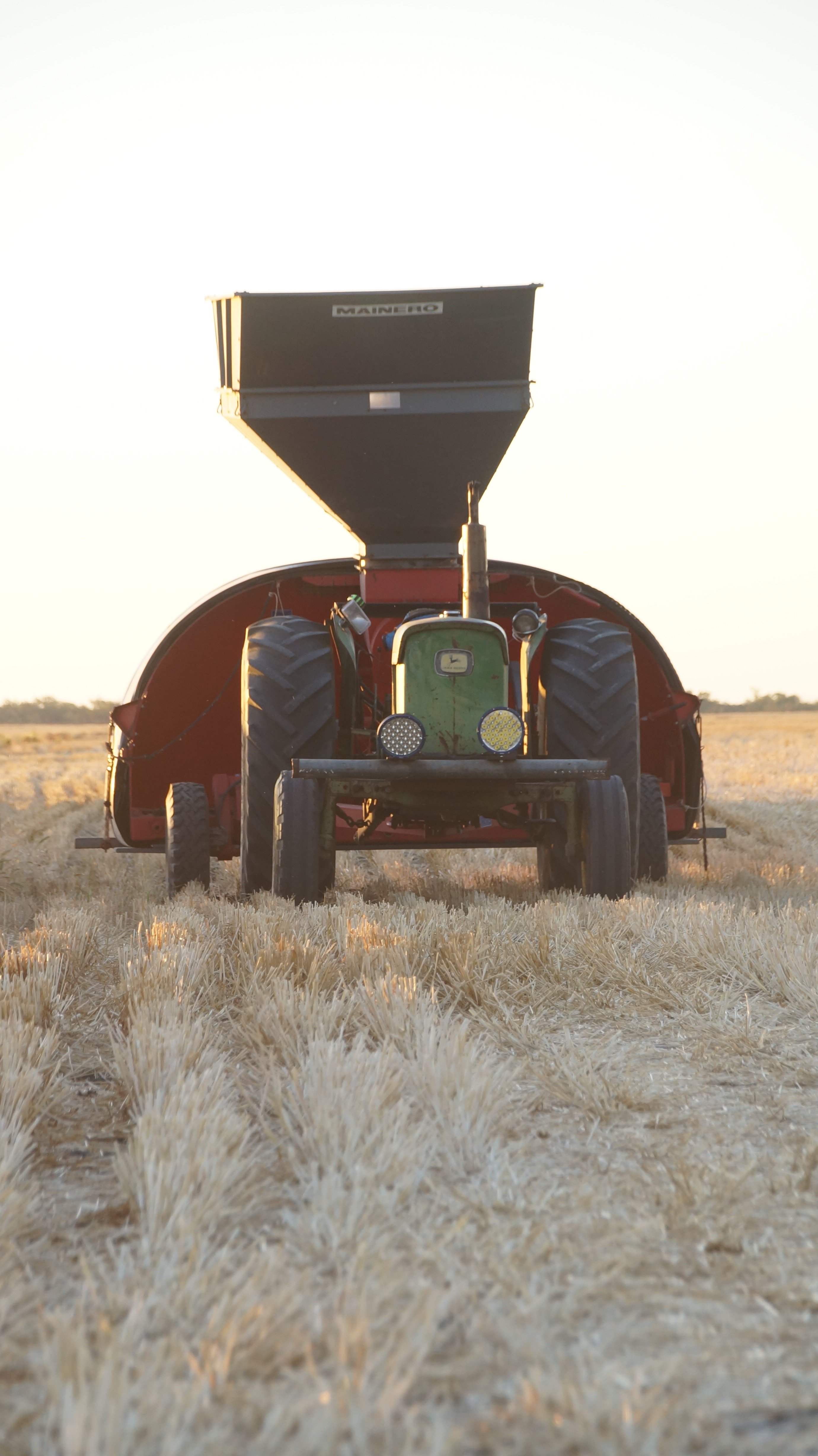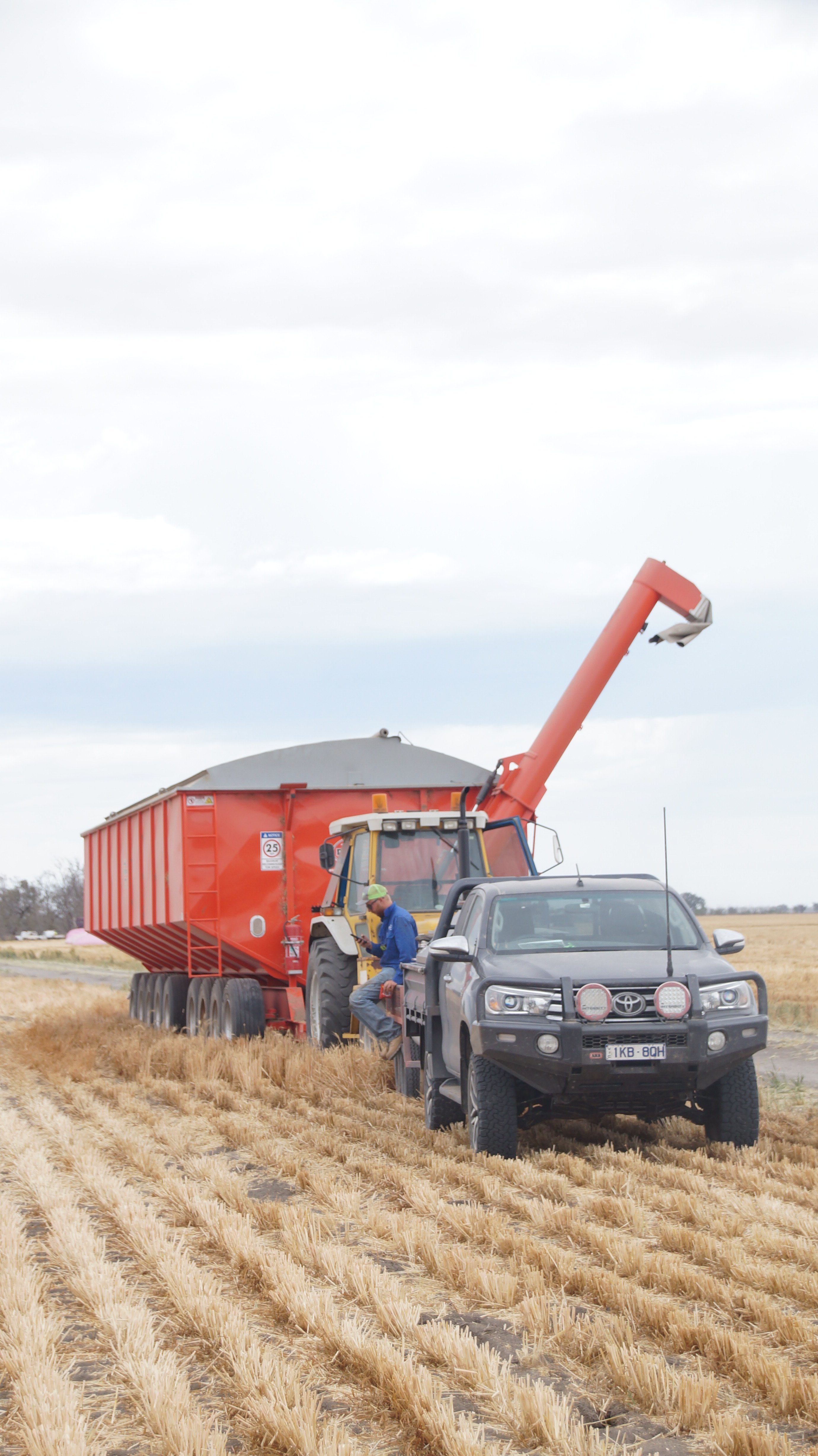 So, I obviously started off very good and the quality of my doing didn’t drop once until we finished off the paddocks. Days just rolled around and soon the whole crew got together. Five headers, four chaser bins and some ground staff – alongside that heaps of trucks. If they weren’t in at tea time I’d put their meals away and into take-away containers for them to eat once they got back into the paddock.