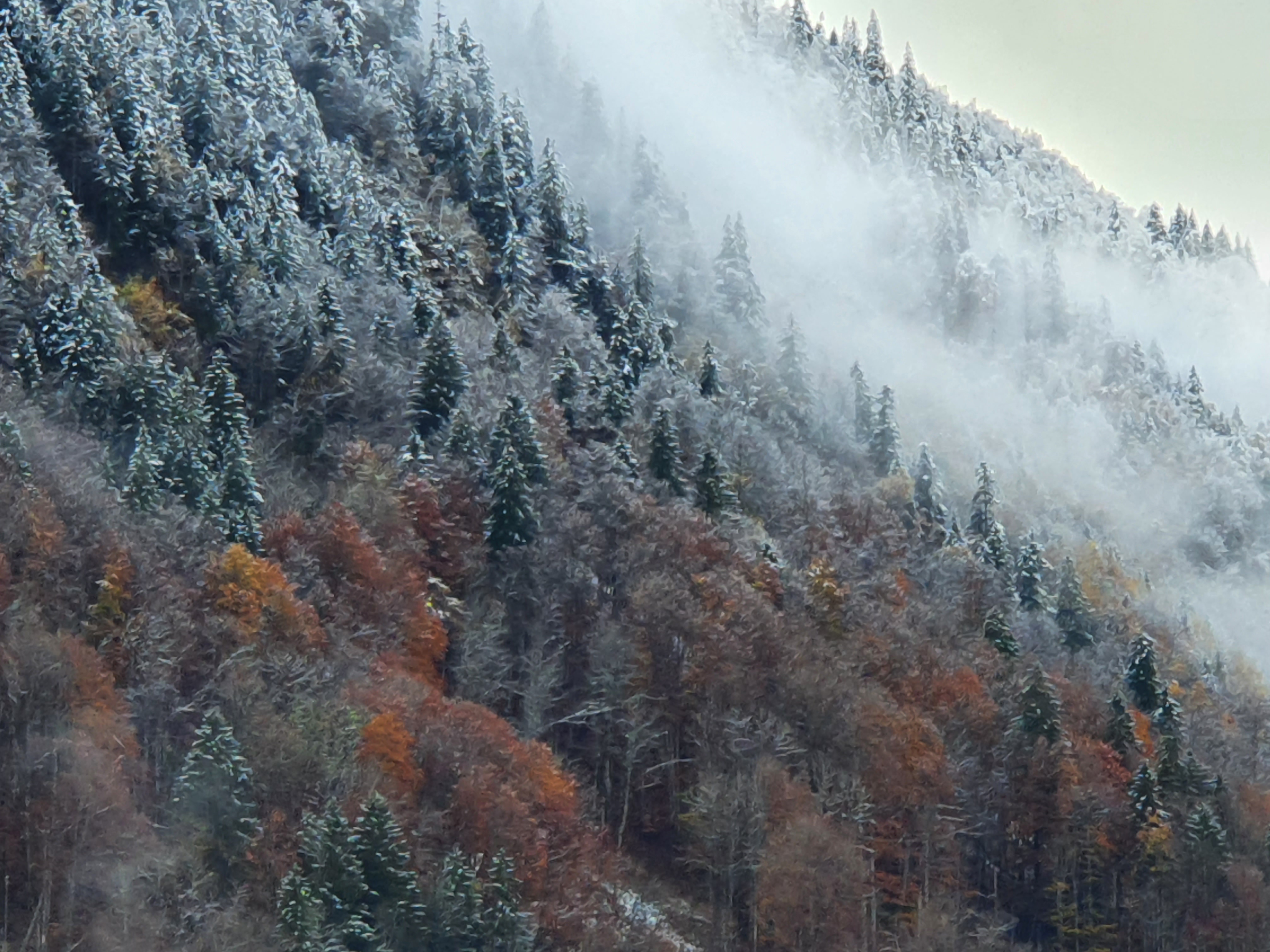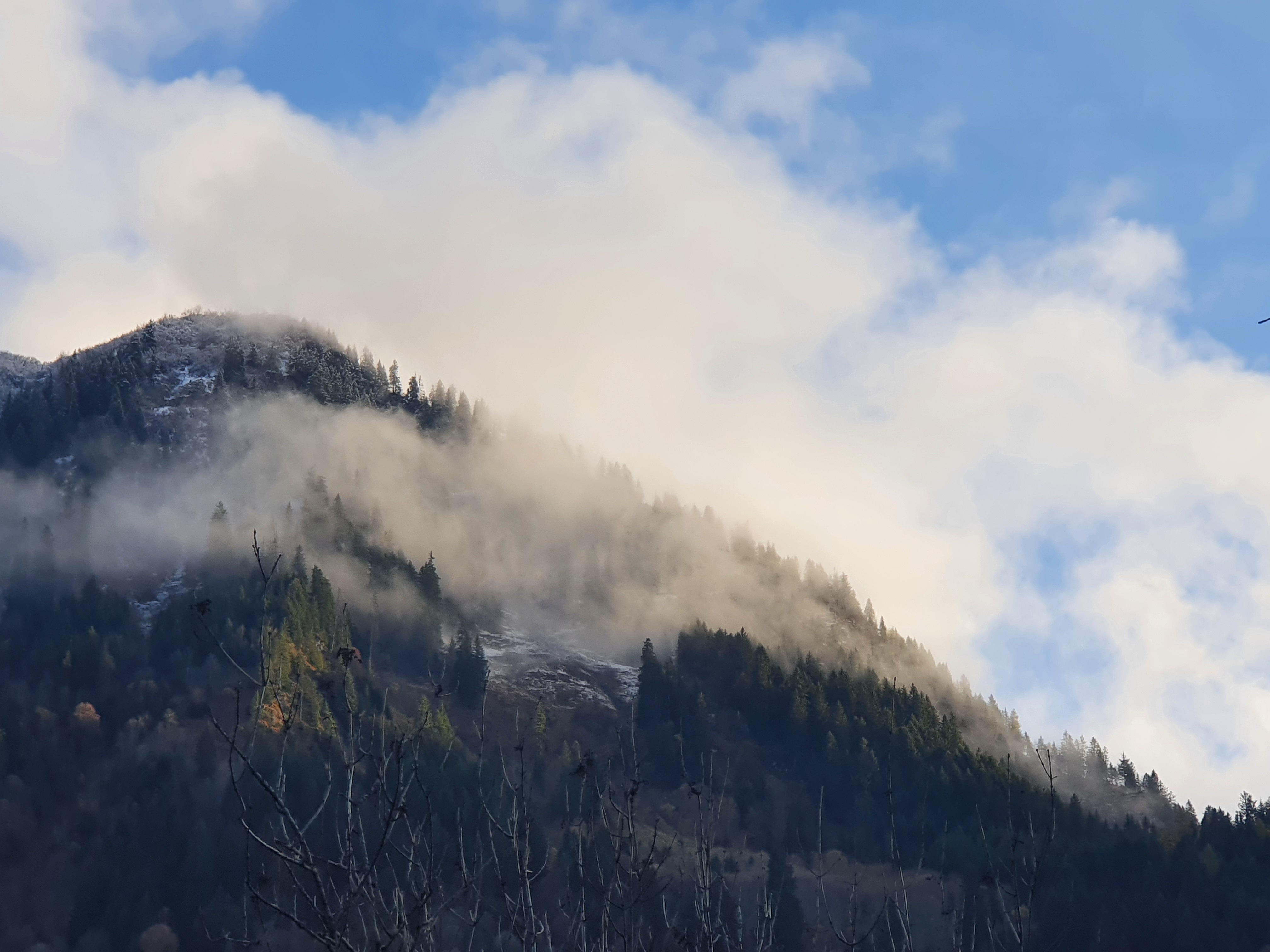 The beginning of the month started out with very nice autumn weather. A friend of Florian, Jean, came to visit and stayed for a few days helping on the renos. Andrin and I played long hours with play dough and on the fourth of November the first “icing sugar” as some might call it painted the landscape in a spotty white. I took a magnificent walk up on the Weissenberge in the first Winterwonderland of the year. It was magnificent to see the autumn colours of nature mash with fog, snow and light. The snow didn’t stick this time though.