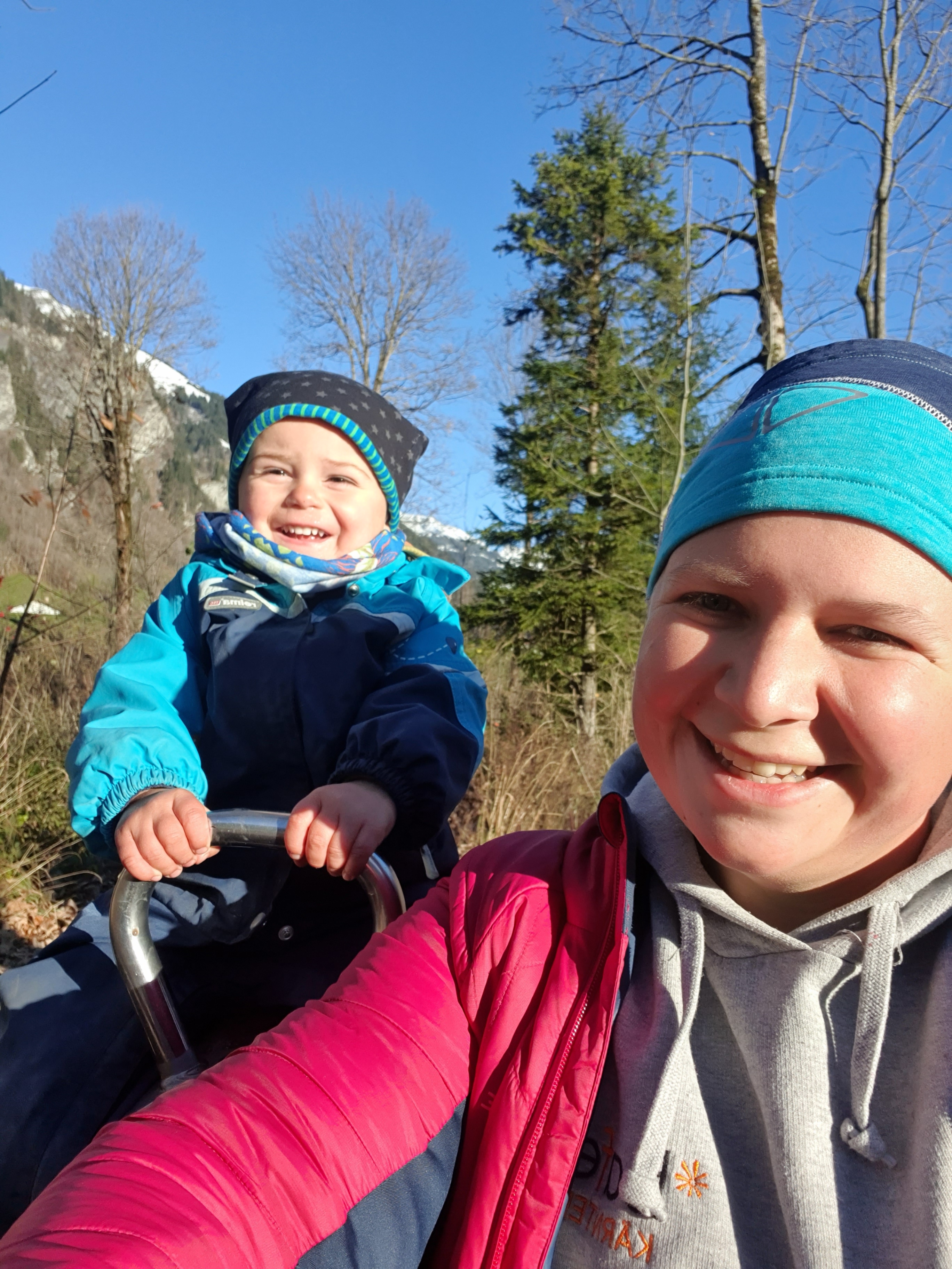The 11th of November 2021 marks a special day for each family member. I got up in the morning and saw THE backpack on the bench downstairs, the one to be taken to the hospital when labour would start. So I knew – it’s the b-day of the little miss. We had breakfast and around 8.15 AM Florian and Nicole drove off – Andrin waving them goodbye and already excited for our trip with the bus. The two of us went to Elm once again. As we got back a bit cold, as the sun wasn’t shining in Elm yet is was sooo good to warm up on the walk home from the bus station. We actually took a detour and went past the chooks, etc. After a late lunch we played with the playdough and that was when I texted Florian about how they were doing and we got the news: Little Miss Nora came earthside around midday – an uncomplicated vaginal breech birth! And they’d be home by night time. Wow! This was great. A little while after the grandparents got here and Andrin was very excited to have Oma here. I took a breather and went for a walk. Later we had dinner and around 8.15 PM Nora, Nicole and Florian where here. Andrin was still up and they went to bed shortly after. What a day!