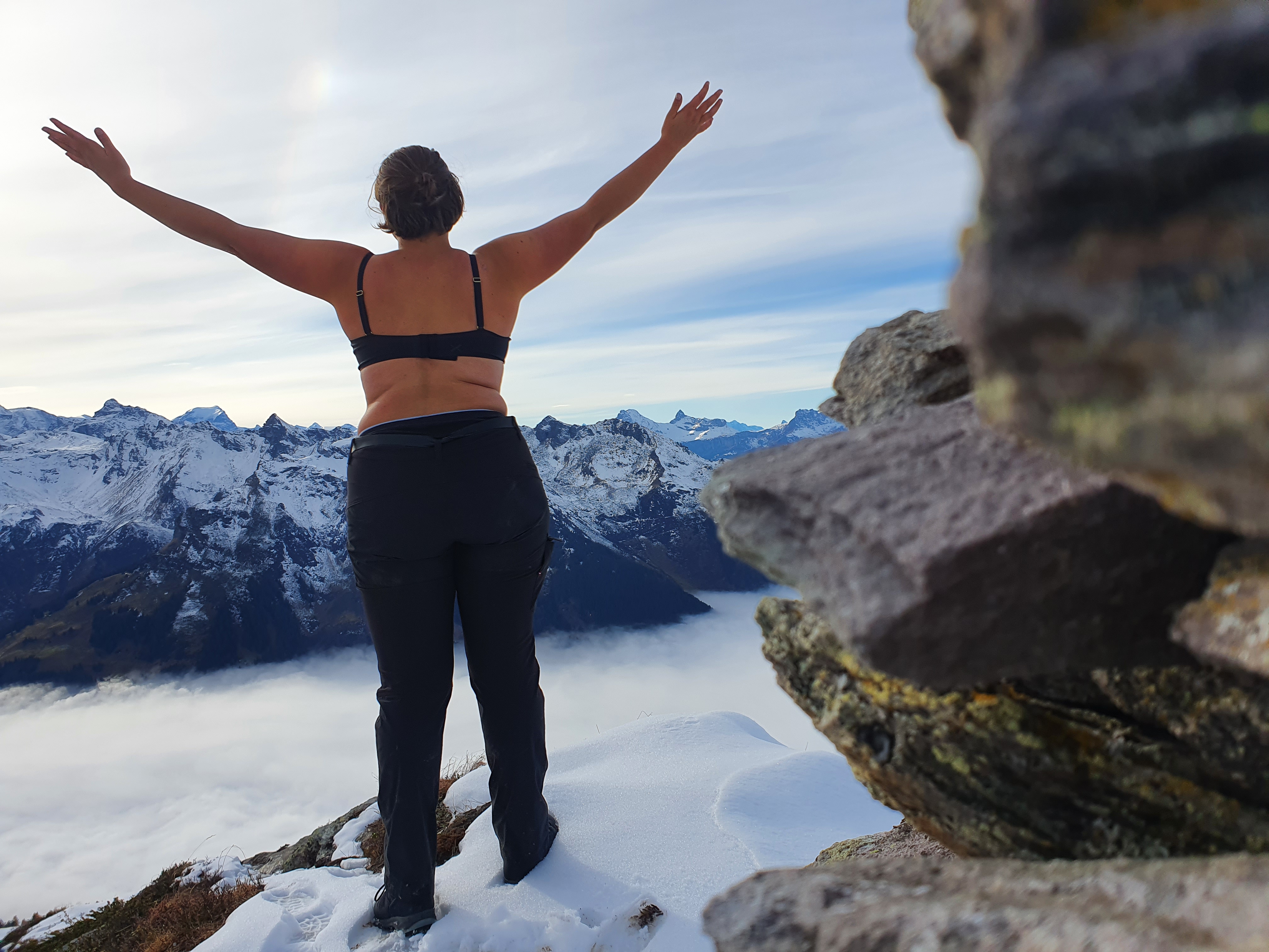 Dann begann eine nebelige/regnerische Woche – so wanderte ich an meinem freien Tag aufs Sunnenhöreli und genoss auf 2164 m die letzten Grantn, zwischen dem Schnee über dem Nebelmeer zu sein. Noch eine Lieblingserinnerung: BobbyCar Rennen mit Andrin (Ja, irgendwie pass ich auf das Ding immer noch drauf.
