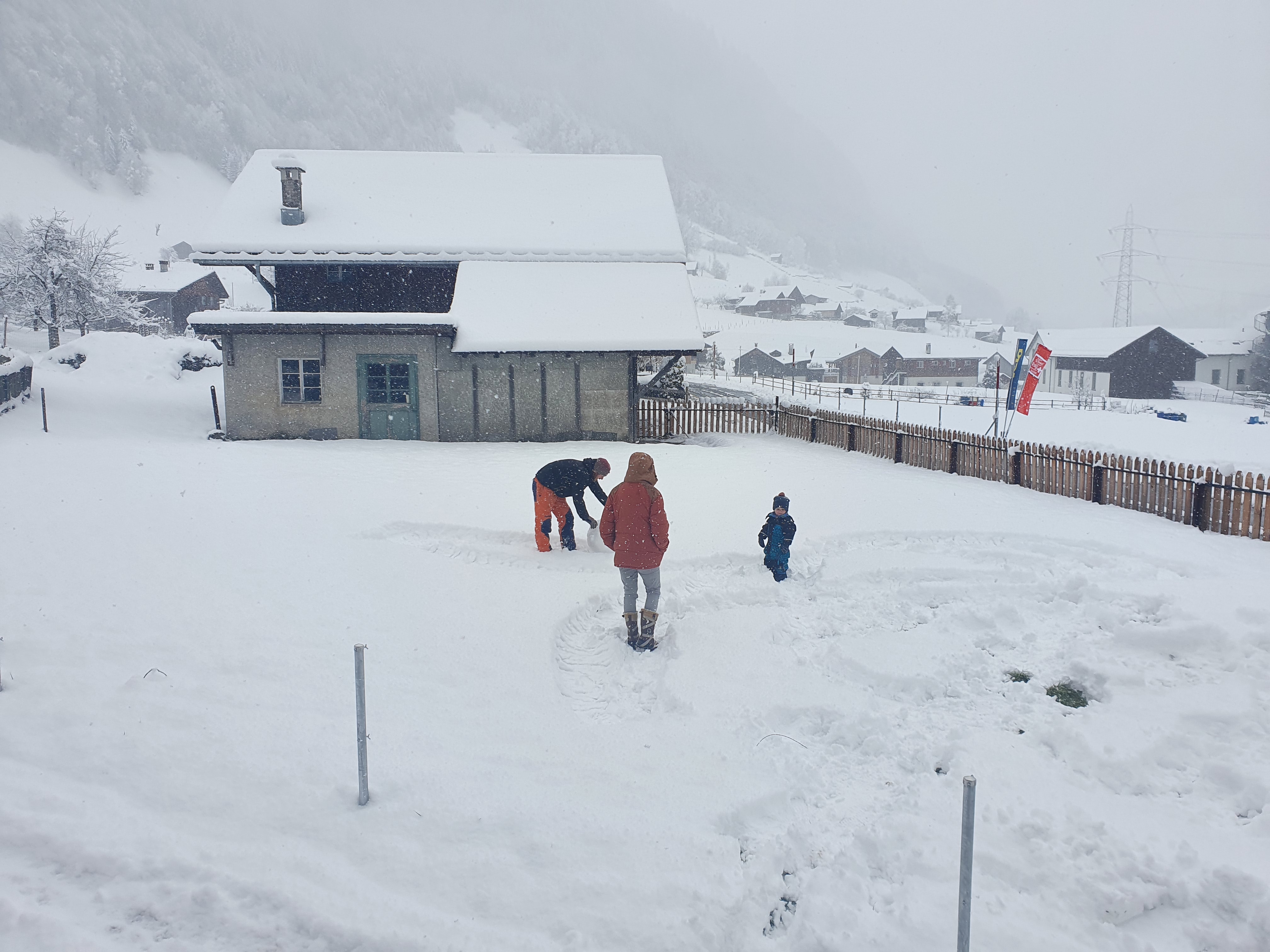 Anfang des Monats war das Wetter wunderschön! Ein Freund von Florian, Jean kam vorbei und half ihm auf der Baustelle für ein paar Tage. Andrin und ich verbrachten viele Stunden mit Knetmasse. Schon am vierten November kam der erste “Staubzucker” – die ersten Wintergrüße. Der Schnee blieb natürlich nicht liegen, trotzdem konnte ich den ersten Nachmittag auf den Weissenbergen im Winterwunderland genießen. Purer Genuss für meine Augen: die herbstlichgefärbten Wälder mit Puderzucker gekleidet, von Nebel umspielt und mit Licht durchflutet. Der Schnee blieb natürlich noch nicht liegen.